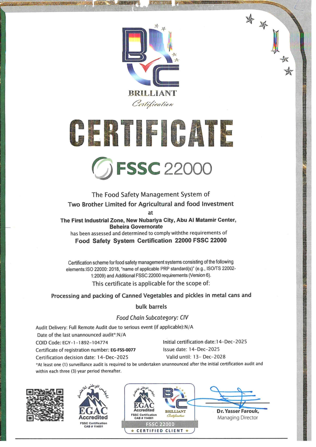 ISO 22000 Certificate